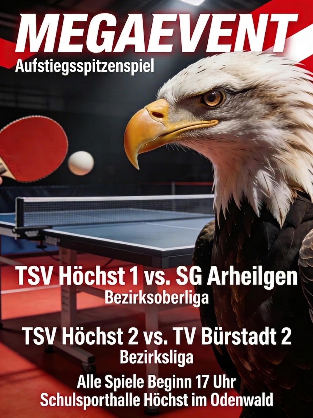 2. Mannschaft des TV Bürstadt. Damit geht es am finalen Heim- und vorletzten Spieltag bereits um alles in Sachen direkte Aufstiegschance durch die Meisterschaft sowie beim Ziel Bezirksliga-Klassenerhalt. Zum Doppelspieltag der Vorentscheidungen am Samstag, dem 18.04.2026, sind daher alle interessierten ZuschauerInnen herzlich willkommen! Die Teams freuen sich über motivierenden Support!